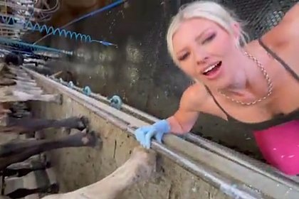 Порномодель выпила молоко из коровьего вымени и подверглась критике зоозащитнников