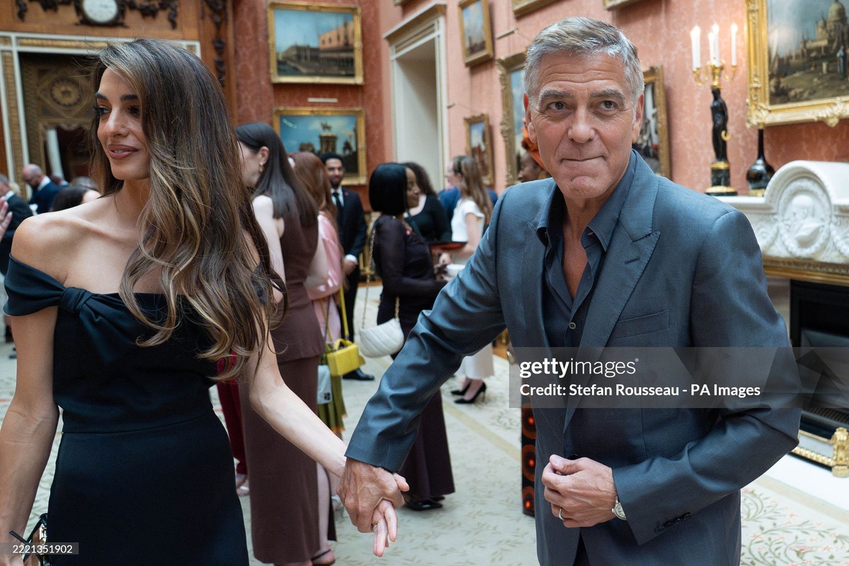 Вчера я мельком показала свои скриншоты с видео, где знаменитый актер слишком возбужден, а его жена, с которой его голливудские сплетники уже полгода разводят, выглядит скучающей. И все-таки язык тела подсказывает: Амаль Клуни во дворце на приеме не так интересно, муж ее крепко держит. Сам Джордж Клуни постоянно съеживается и делает " замок", даже изображая улыбку. Я вообще не понимаю, зачем ему король и королевский фонд? Он же ярый противник консерваторов, отдал Байдену 100 миллионов на кампанию, в том числе поливал помоями Трампа. Впечатление, что решил вложить деньжат в King's Trust. Вдруг дадут рыцарство, как Бекхэму.