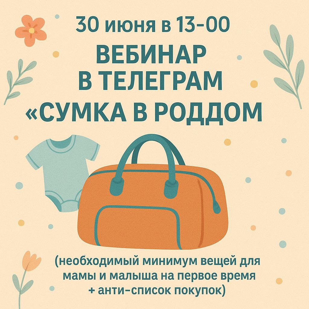 Вебинар "Сумка в роддом: собираем без паники и лишнего" 🗓 30 июня в 13:00 (онлайн) Сборы в роддом – как игра в тетрис? 🧩 Нужно уместить всё необходимое, но не перегрузить сумку. Давайте сделаем это грамотно и спокойно! На вебинаре разберём: ✅ Обязательный минимум – что действительно понадобится вам и малышу ✅ На чём можно сэкономить, а на что лучше не жалеть средств ✅ Список вещей для ребёнка – только нужное, без лишнего ✅ Частые ошибки – что чаще всего берут "на всякий случай" (и не используют) ✅ Ответы на ваши вопросы – развеиваем все сомнения! Участие онлайн – бесплатно! 📌 Запись вебинара – доступна за символическую плату ("чашка кофе") Встречаемся тут: 👉 https://t.me/+B1vYZ1mSAdg2MWFi Ведущая: Вероника Савина (консультант по ГВ, перинатальный психолог) 💡 После вебинара: ✔️ Чек-лист "Идеальная сумка в роддом" ✔️ Доступ к записи (для участников) ✔️ Возможность задать вопросы лично Не переживайте – соберём сумку вместе! Легких вам сборов и спокойных родов! 🤍 P.S. Подели