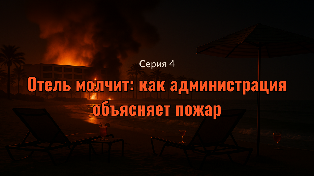 После пожара в египетском отеле туристы не получили ни объяснений, ни извинений. Почему руководство молчит и что это значит? Отель вспыхнул ночью, а утром всё будто бы забыли. Почему администрация отказывается комментировать пожар и что теперь делать туристам? Молчание — новая угроза? 🟥 Серия 4: Отель молчит: как администрация объясняет пожар «Мы пытались узнать хоть что-то. Нам не отвечали. Просто улыбались» —