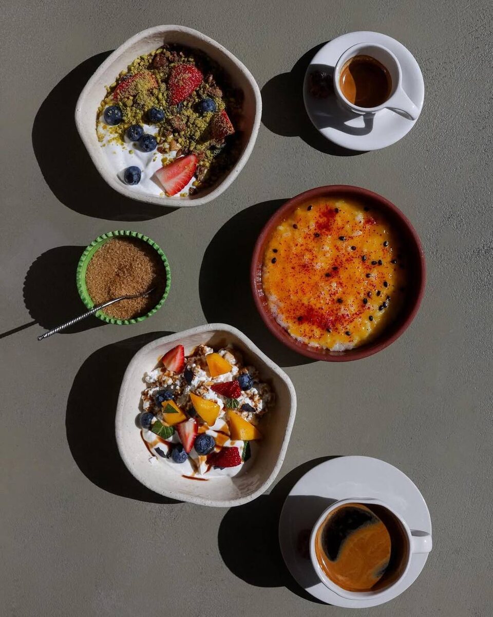 #Москва #Завтрак О завтраках в Saray мы можем говорить бесконечно: •Рисовая каша с манго (590₽); •Йогурт с гранолой (750₽); •Лепешка из печи с лососем (1350₽); •Блины из ржаной муки с красной икрой и сметаной (1350₽). В будни завтраки готовят с 8:00 до 13:00, а в выходные — с 9:00. Малая Никитская ул., 24c5