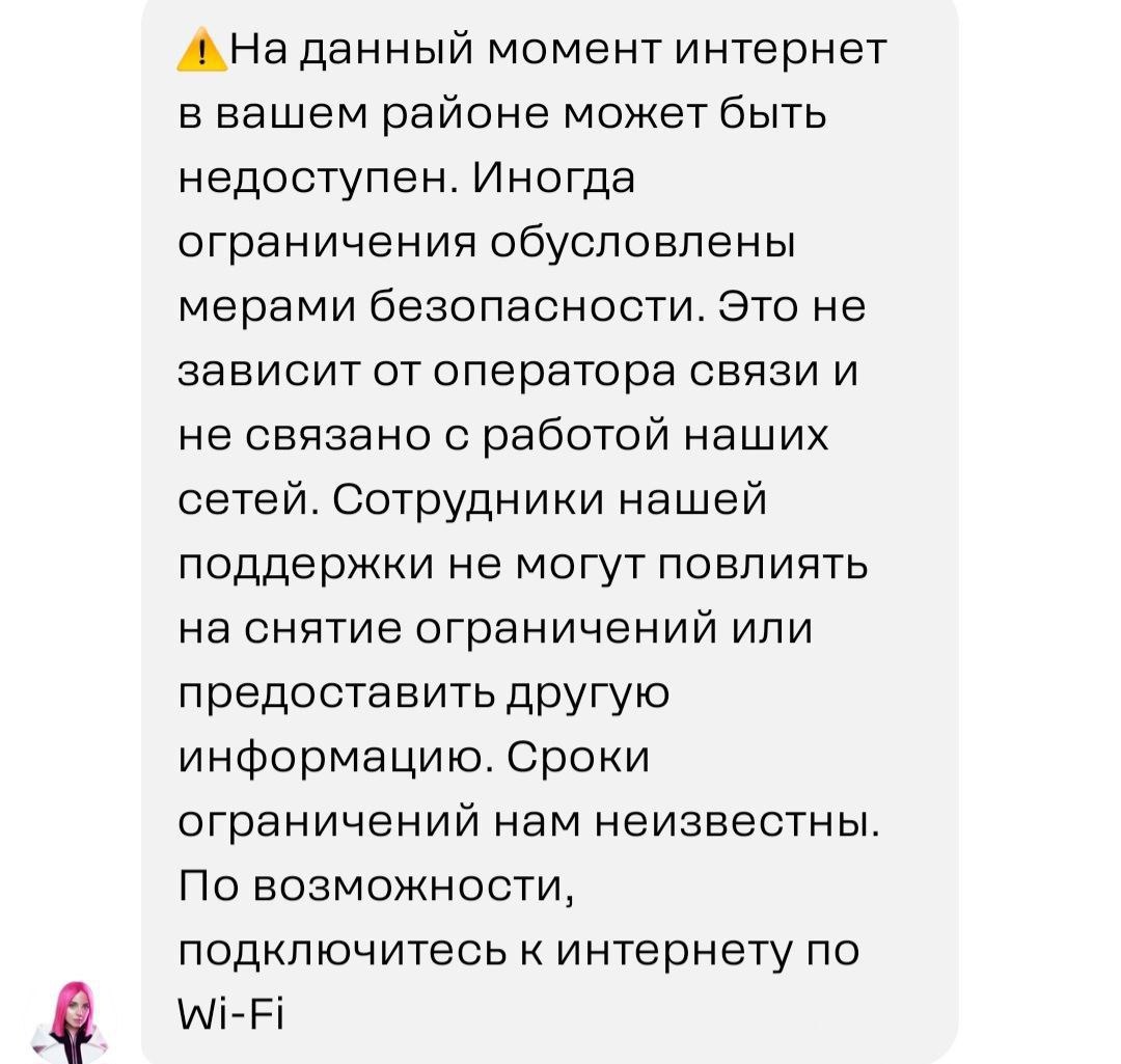 ❗️В Оренбурге третий день не работает мобильный интернет 😡Жалобы поступают от абонентов всех сотовых операторов. В службе поддержки отсутствие интернета объясняют мерами безопасности. Но предупреждений об атаке БПЛА пока не поступало. Сроки ограничений не называют. Wi-Fi в помощь.