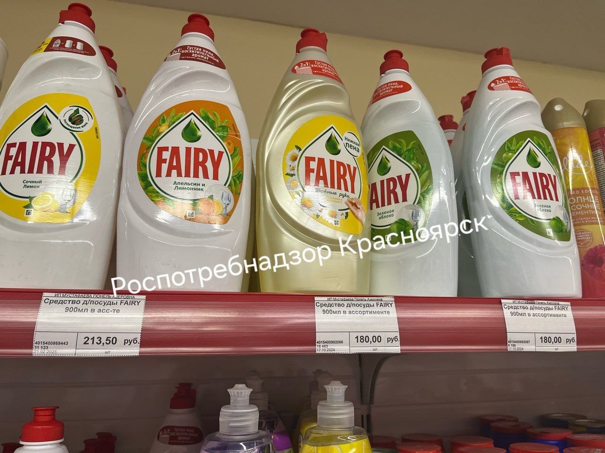 В краевое управление Роспотребнадзора поступила информация о продаже продукции бытовой химии, незаконно маркированной товарным знаком «Fairy», в супермаркете «Avand», расположенном в Красноярске на проспекте Комсомольском.