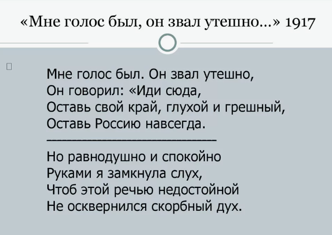 Краткое содержание стихотворения "Мне голос был. Он звал утешно..." А.А. Ахматовой