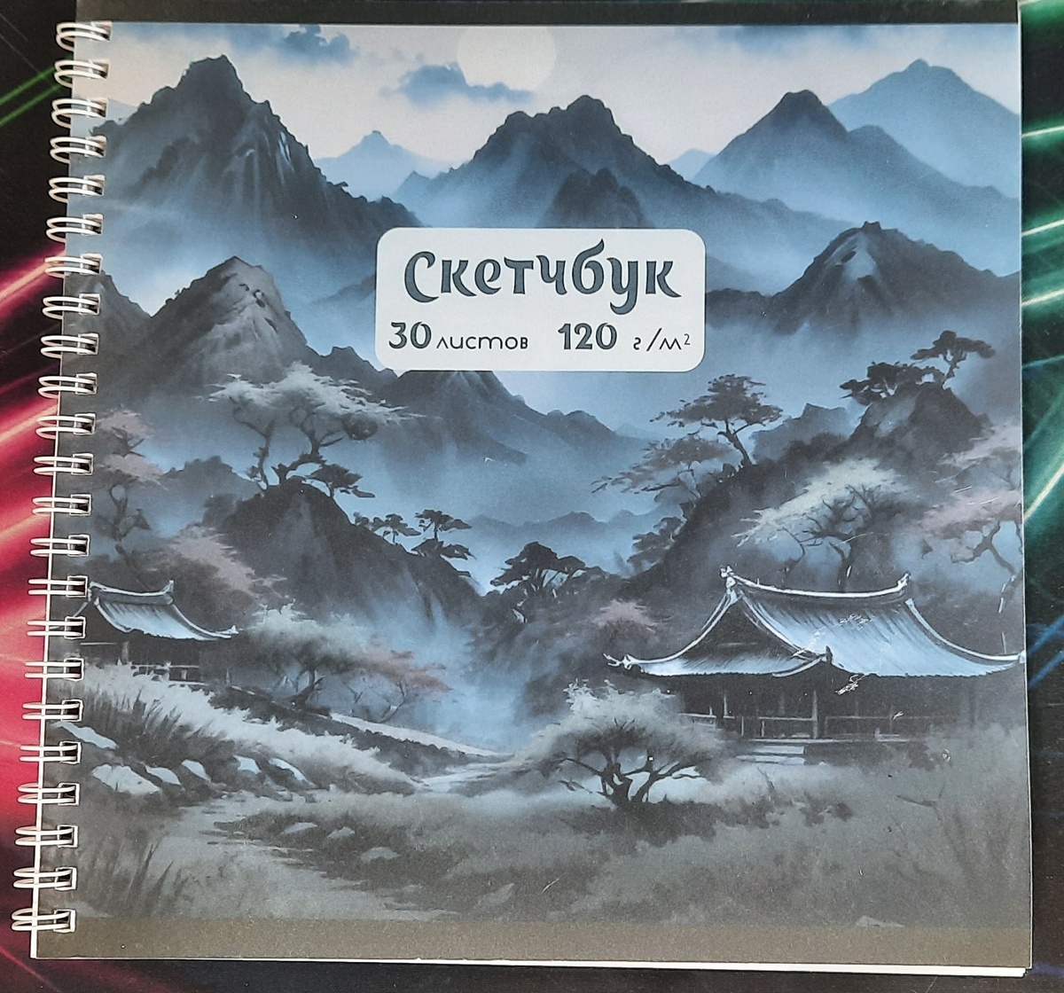 К сожалению мой скетчбук, в котором я рисовал был испорчен. На него поставили горшок с моими кактусами. Но я его до сих пор использую для заметок и практик по рисованию. Но я решил, что пора доставать скетчбук, который я по чистой случайности купил в FixPrice. Мне он понравился форматом, ценой и белой гладкой бумагой.