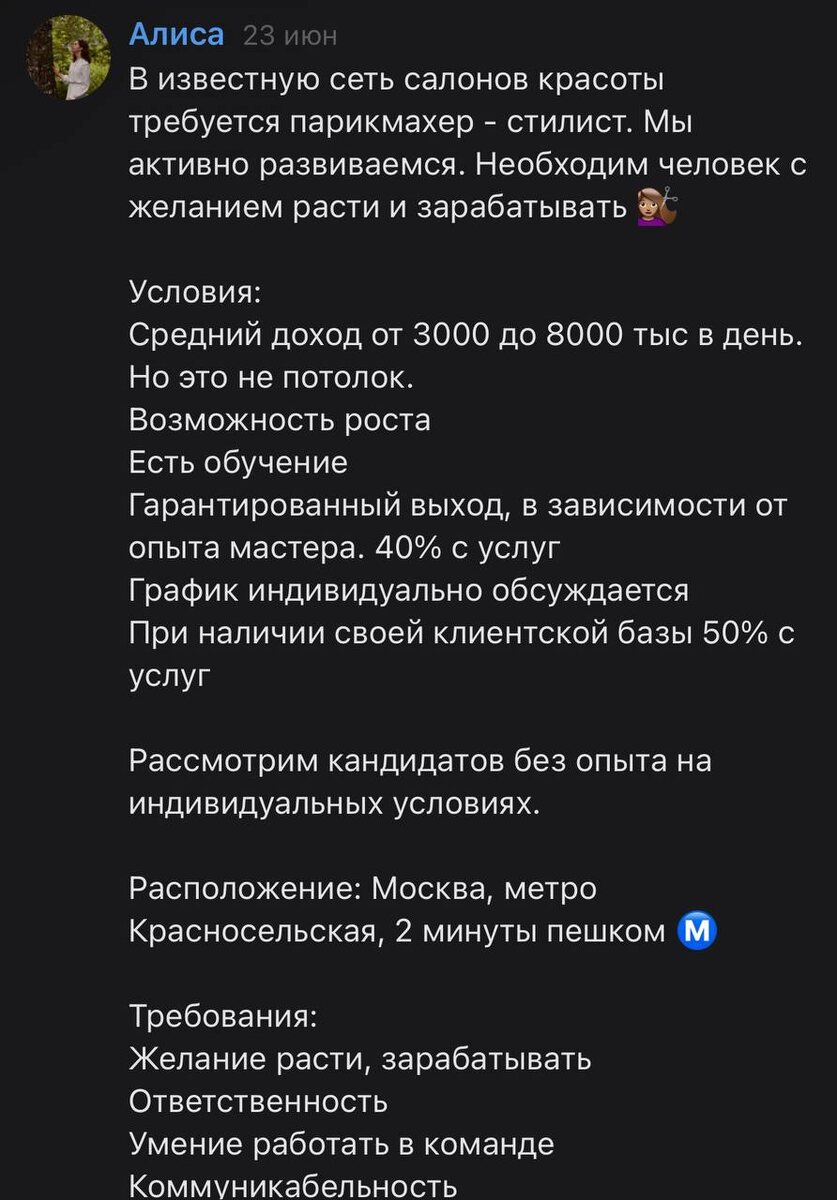 И еще новость, для вас, для моих учениц, сеть салонов «Точка Красоты» предлагает вакансию, делюсь с вами