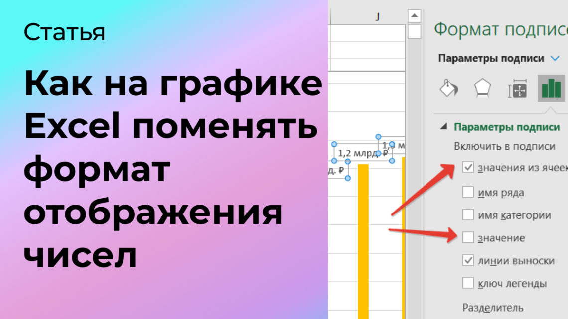 Каждый из нас хоть раз сталкивался с необходимостью обработки данных в Excel. Будь то бюджет, статистика или анализ продаж — факты и цифры могут рассказать целую историю. Но, представьте, что вы создали график, который, по идее, должен поразить ваше руководство, но он испорчен нечитабельными или неудобными форматами чисел. Часто проблема возникает из-за того, что в таблице отображение поменяли, а на графике ничего не изменилось. В статье расскажу, как на графике Excel поменять формат отображения чисел. Допустим, у нас есть ряд данных без числового форматирования. Например, рубли. На его основе будем строить график. Для нормального отображения поменяем формат на более удобный. Воспользуемся произвольным форматом в Excel, чтобы поменять формат чисел на млрд. Для этого выделяем ряд правой кнопкой и идём в «Формат ячеек». Выбираем пункт «Все форматы» и пишем формат отображения. # ##0,0 " млрд. ₽" В зависимости от кол-ва пробелов между нулём и первыми кавычками (в примере их 3 для миллиар