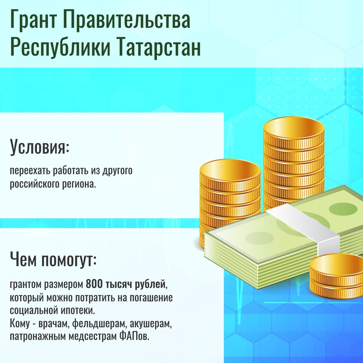«Молодежь всегда была и будет движущей силой нашей республики», - так говорит Раис Татарстана Рустам Минниханов. Что, конечно, актуально и для молодых кадров в здравоохранении. В 2024 году: - 180 квот выделено для получения медицинскими работниками социальной ипотеки в приоритетном порядке; - 130 человек приняли участие в программе «Земский доктор (фельдшер)»; - 125 медиков получили грант Правительства Республики Татарстан. В преддверии Дня молодежи рассказываем о том, какие меры поддержки существуют в Татарстане для тех, кто решил связать свою жизнь с этой благородной профессией.
