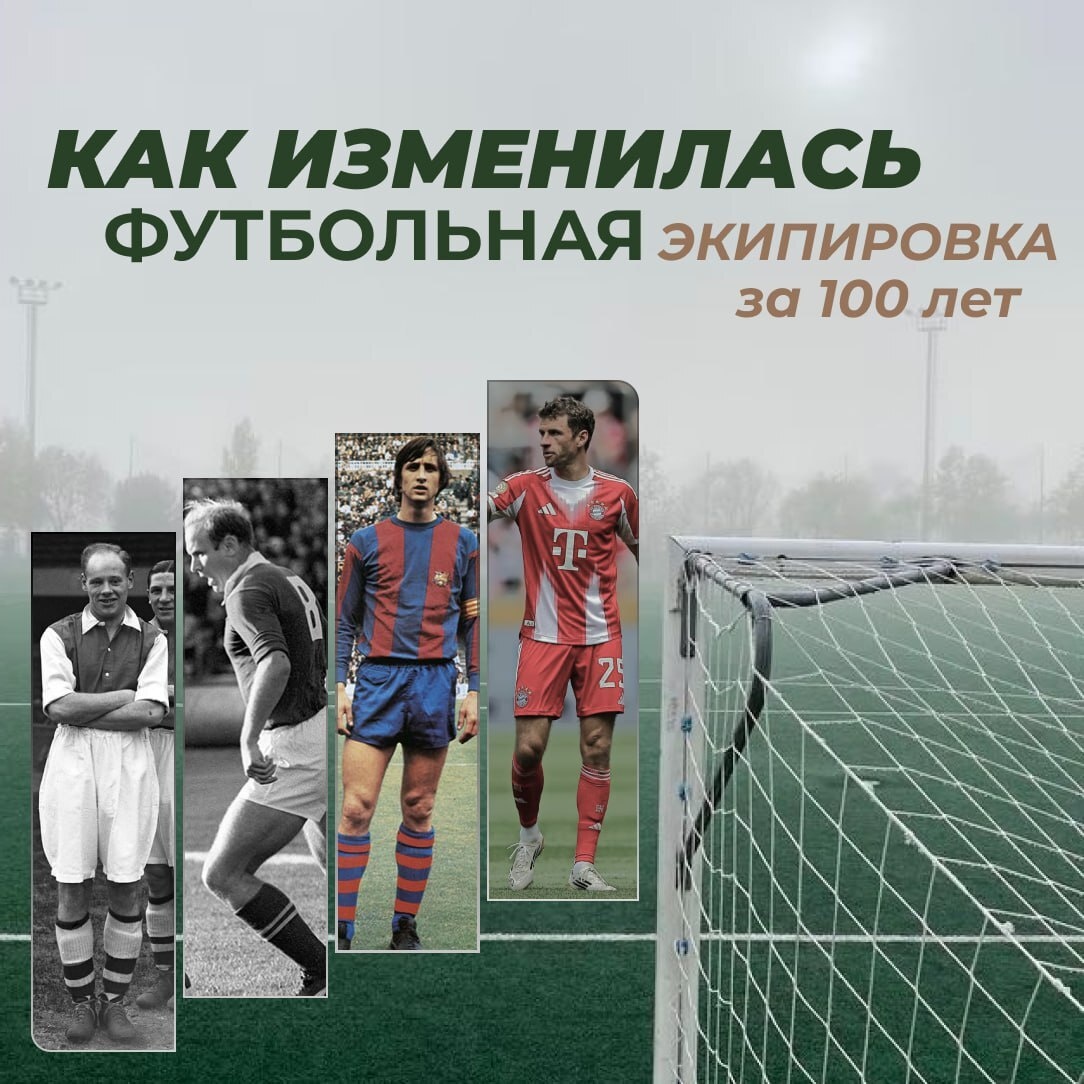 ⚽Как изменилась футбольная экипировка за 100 лет? За столетие одежда футболистов прошла путь от рубашек до высокотехнологичной "второй кожи" — и это не просто смена моды, а настоящая революция в комфорте и безопасности игроков. Как это было — смотрите на карточках.