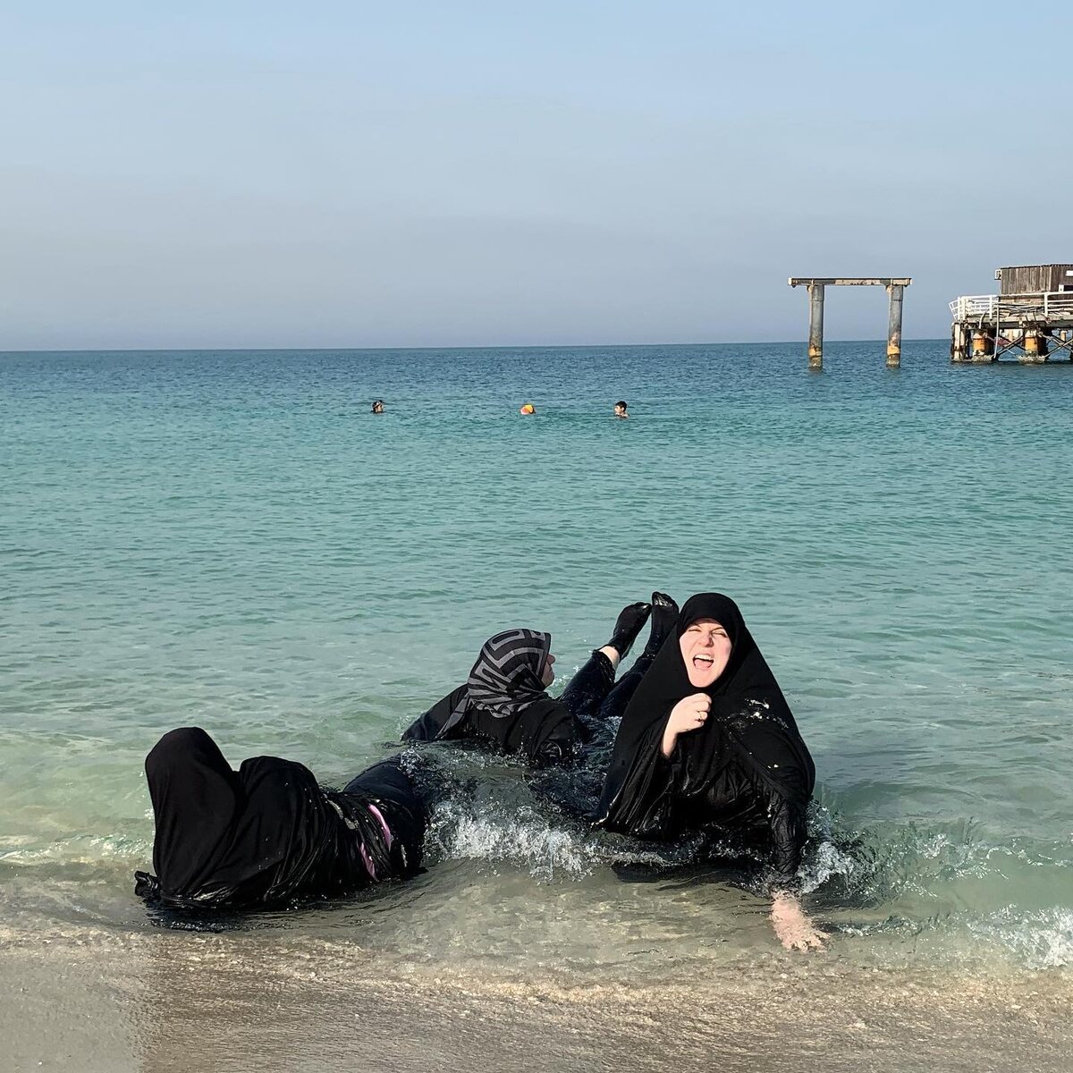 В Иране действует режим мулл. Исламское духовенство занимает высшие посты и контролирует повседневную жизнь граждан через шариатские законы. Согласно законодательству Ирана женщины обязаны быть покрытыми, если находятся в публичных местах, в том числе на пляжах во время купания. На фотографии ниже иранские женщины развлекаются на пляже острова Киш, который находится на юге Ирана. Юг Ирана омывают два залива - Персидский и Оманский. На севере Ирана - Каспийское море. Одним из самых популярных мест для купания является остров Киш. Море вокруг острова бирюзового цвета, очень теплое. Соленость высокая. Песок мелкий. Пляжи покрыты кораллами. Киш - это почти райский уголок, стоящий в стороне от шариатской жизни Ирана. Но даже там женщины вынуждены покрываться полотном ткани для соблюдения исламских норм. То же самое касается фонтанов. На фотографии ниже - 16-летняя девочка, она играет у фонтанов в парке в Тегеране. Женщинам в парках запрещено мокнуть, так как ткань начинает прилипать к телу.