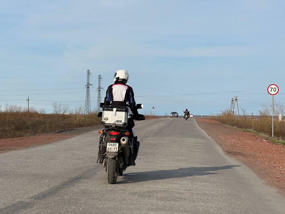 Теперь наша колонна состоит из пяти мотоциклов. Выезжали в суматохе, через КХ "Зырян". И не договорились, как едем. Честно? Первые 80 км была какая-то ебля: колонна рвалась, растягивалась, нарушалась дистанция и я решила пропустить всех вперед. Вскоре состоялась техническая остановка, где мы обговорили, как едем. Дальнейший путь прошел идеально.