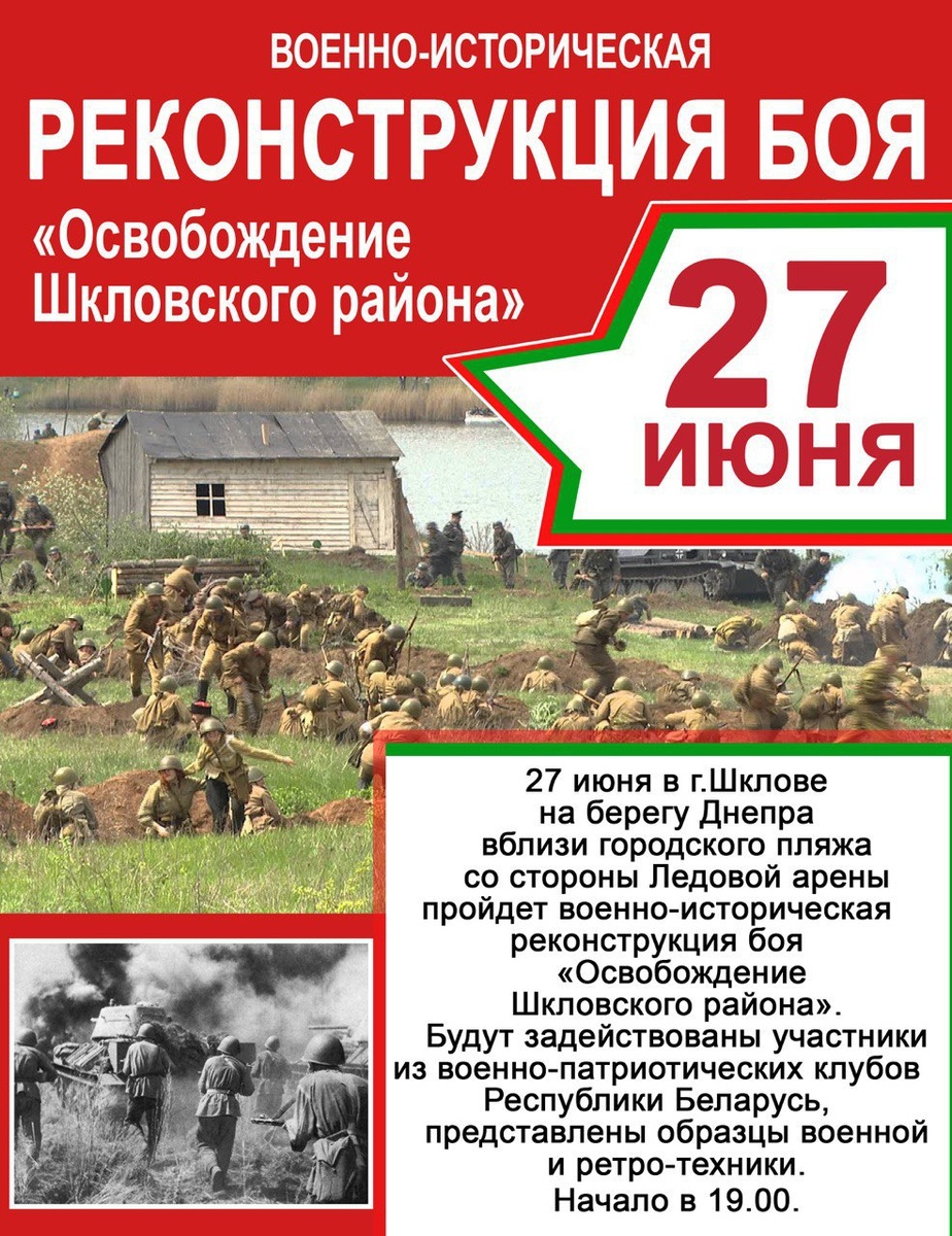 ⚡️⚡️⚡️27 июня шкловчан ждет реконструкция боя «Освобождение Шкловского района».