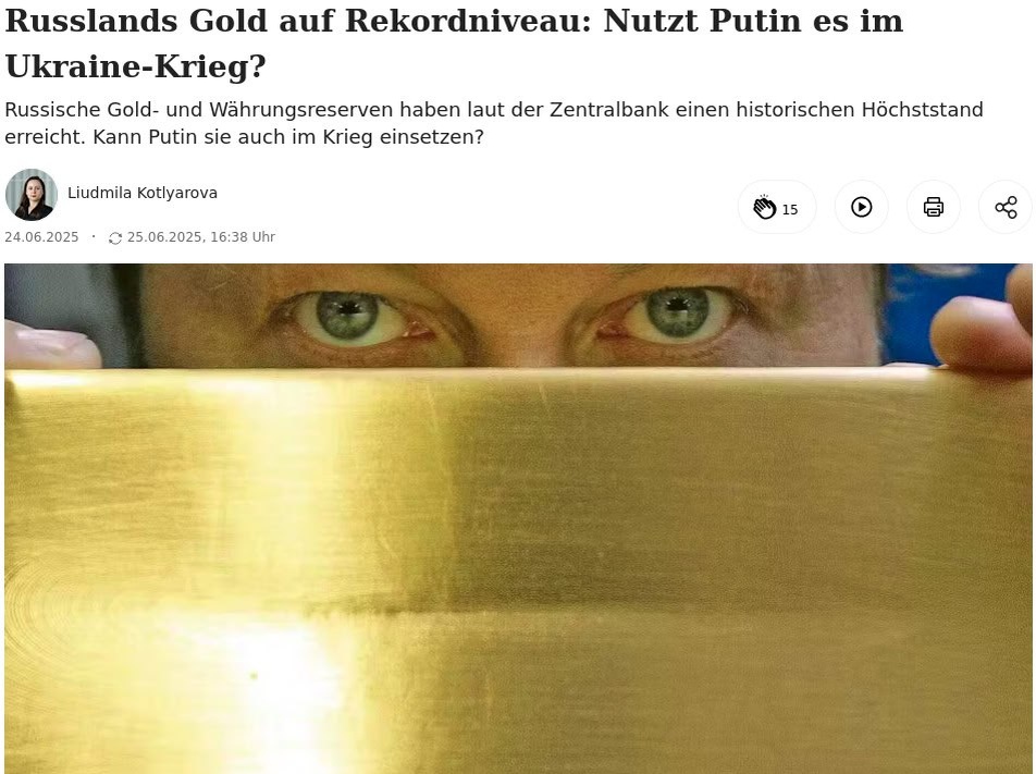 Немецкие СМИ оценили рекордный золотой запас России. Как отмечает Berliner Zeitung, в настоящее время золотовалютные резервы РФ составляют $680,4 млрд (не считая $300 млрд резервов, замороженных Западом в виде санкций) и они продолжают расти. Доля золота в активах РФ достигла исторического рекорда в 36,5% или $248,2 млрд. Причиной резкого роста является давняя стратегия России по обеспечению большей независимости от западных финансовых систем за счет увеличения своих золотых резервов,— подчеркивает СМИ. Также в статье указывается, что Россия выиграла от роста цен на золото на мировом рынке. В геополитически неопределенные времена золото традиционно было привлекательным убежищем для инвесторов.