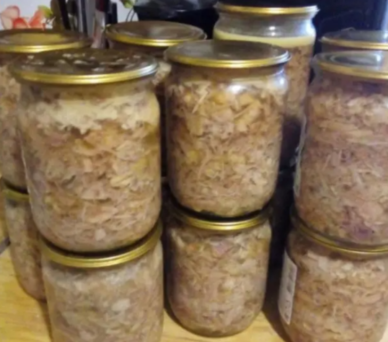 Рецептом со мной поделилась моя подписчица, спасибо за идею, я сама не догадалась. Вот так готовит она 👇 А я просто сварила обычный холодец, отделила мясо от костей, добавила чеснок залила бульоном в котором варился холодец, довела до кипения и разлила по стерилизованным банкам и закатала. Получилось ну очень вкусно. Если интересно загляните сюда ► Секреты вкусного холодца.