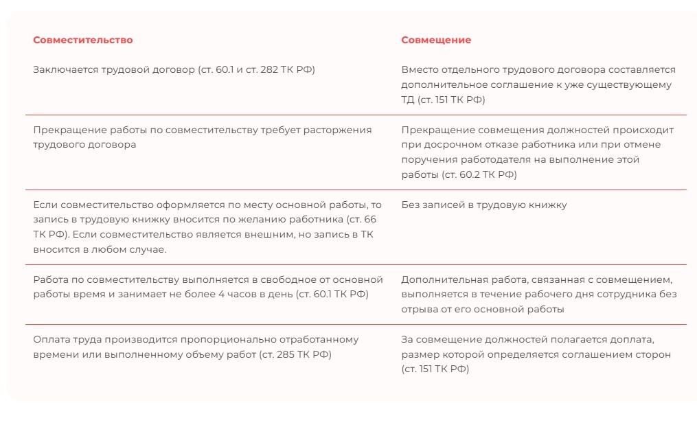 Прежде чем заполнять отчет ЕФС-1, критически важно понять разницу между совместительством и совмещением. Несмотря на схожесть терминов, между ними есть существенная разница.