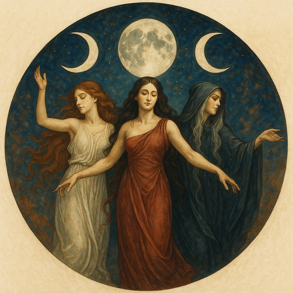 Серебряная Луна была девой, полной потенциала и свободы. Золотая - зрелой женщиной, несущей силу творения и любви. Чёрная - старой мудрой женщиной, хранящей тайны трансформации.