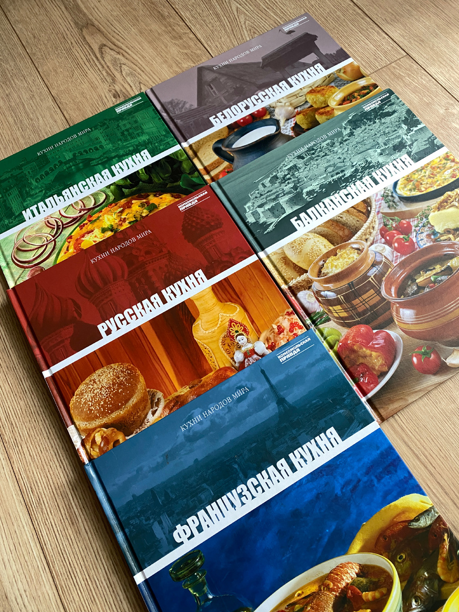 Случайная барахолка. Мимоходом. Просто заглянуть из любопытства. Вдруг я снова влюблюсь в какую-нибудь чашку? И вот я уже стою над коробкой с книгами, в которой лежит сокровище — пять кулинарных сборников от "Комсомолки": французская, итальянская, русская, белорусская и балканская кухня. Новенькие, с иллюстрациями, и, что удивительно, — с очень вкусными, современными рецептами. Не откуда-то из глубин 90-х, а прям вот бери и готовь. И наслаждайся. Мы с мужем обожаем Балканы. Особенно Албанию и Сербию. И когда я открыла книгу — у меня прямо щёлкнуло внутри: чорбы, гювечи, пребранац, салаты с печёными перцами, икра из чеснока с орехами... Это всё — те самые вкусы, которые не найти в кафе за углом. Это про простую еду с характером. Про душу. И путешествия, которые, оказывается, можно устроить у себя на кухне. В итальянской — классика: капрезе, пасты, пиццы, лазанья, панна-котта, тирамису. Но лично меня зацепили не они, а груши в красном вине. Чистая красота. Идея на вечер, когда хочетс
