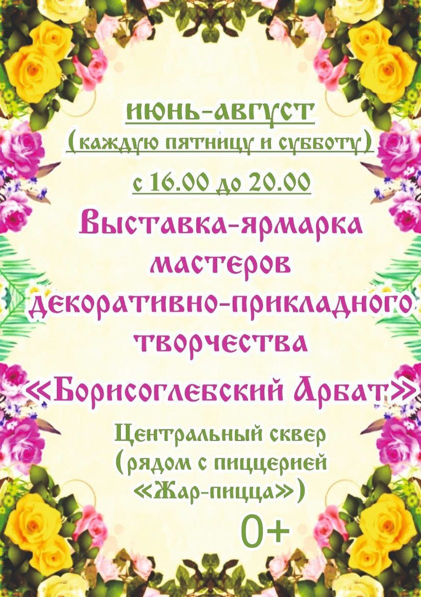 Друзья! Напоминаем, что на протяжении всего лета в центральном сквере города проходит выставка-ярмарка изделий мастеров декоративно-прикладного творчества «Борисоглебский Арбат».