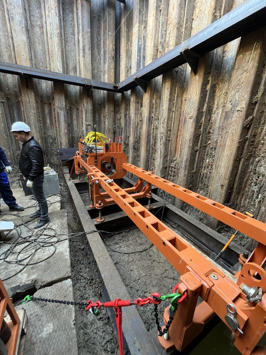 В предыдущем посте мы рассказывали о строительстве бестраншейного перехода с использованием активного гидравлического расширителя и МНБШ-1120. В Санкт-Петербурге эта установка проложила под трамвайными путями стеклопластиковую трубу диаметром 1099 мм на длину более 30 метров.
