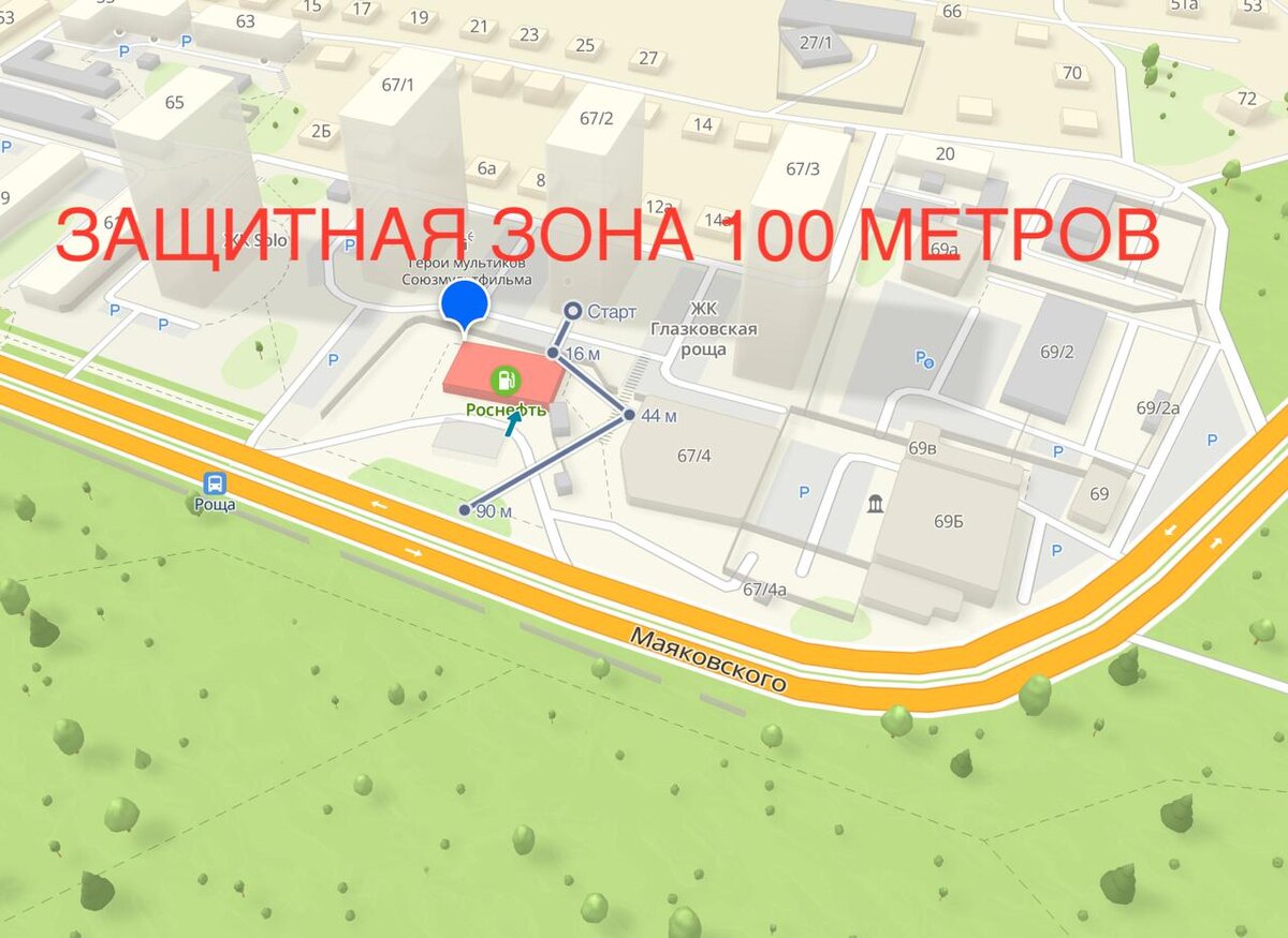 ⛽🚷Личная придомовая заправка в 20-и метровой доступности. Как строительная компания Иркутского депутата обошла закон? Итак, ко мне обратились жители ЖК Solo (Маяковского 65). Возмущает Иркутян, что прямо под их домом стоит автозаправочная станция, при этом одна из самых популярных, на которую автомобилисты выстраиваются в очередь. Тема сразу меня заинтересовала, ведь в действительности расстояние между АЗС (где хранятся тонны опасного воспламеняемого топлива) до домов достигает в одном месте минимальных 25 метров. Вот, посмотрите обычный скрин с карты, где можно любому из вас проверить эти данные замерив расстояние от домов до АЗС с любых ракурсов. И чем дальше мы пытались разобраться в этой точечной проблеме, тем более большой клубок проблем нам виделся на горизонте. Давайте начнем с того, что закон подразумевает так называемую санитарно-защитную зону от любой АЗС. И она четко определена – это, товарищи, 100 метров и не менее. И даже есть специальное дополнительное разъяснение глав