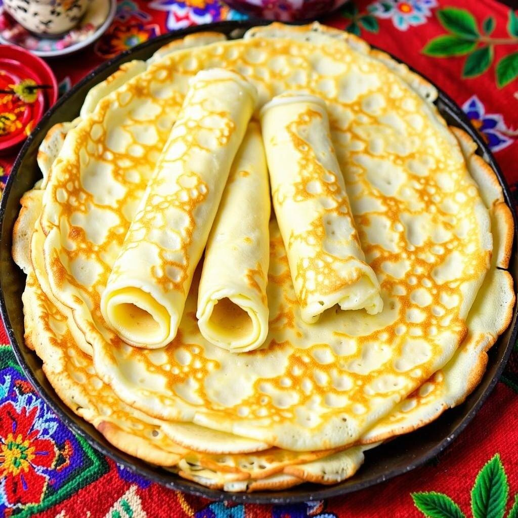 ▌ Что такое муле? Муле — традиционное блюдо молдавской кухни, представляющее собой тонкие блины с начинкой, приготовленные особым способом и подаваемые на свадьбах и праздничных мероприятиях. Это своеобразная разновидность румынских и молдавских тонких лепешек («клэтуры»), которые традиционно готовят для особых случаев. ▌ Происхождение блюда Название «муле» имеет корни в латинском языке ("mola"), означающем муку или мучное изделие. Само слово широко распространено среди народов Балканского полуострова и Восточной Европы, обозначая различные виды хлеба и выпечки. Традиционно муле готовили именно для свадебных торжеств, поскольку считалось, что они приносят удачу молодоженам и символизируют плодородие и благополучие семьи. ▌ Рецепт приготовления муле ▌ Ингредиенты: - Для теста: - Молоко — 700 мл - Яйца куриные — 3 шт. - Сахар — 1 ст.л. - Соль — щепотка - Растительное масло — 2 ст.л. - Мука пшеничная — около 2 стаканов - Для начинки: - Творог мягкий — 500 г - Изюм — горс