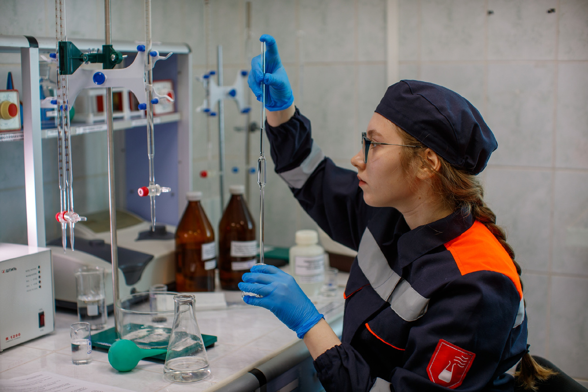 – Я перешла на 4 курс, выбрала направление «Химическая технология неорганических веществ». Недавно мы были в лаборатории, где осуществляется хроматографический анализ, учились делать расчёты, сравнивать их с теми значениями, которые выдаёт программа. На работе хорошая атмосфера, всё объясняют понятно и чётко, и ты уже не механически что-либо делаешь, а погружаешься с головой в технологические процессы, – отметила Аида Дилабирова, техник Инженерно-технического центра, студентка Санкт-Петербургского государственного технологического института.