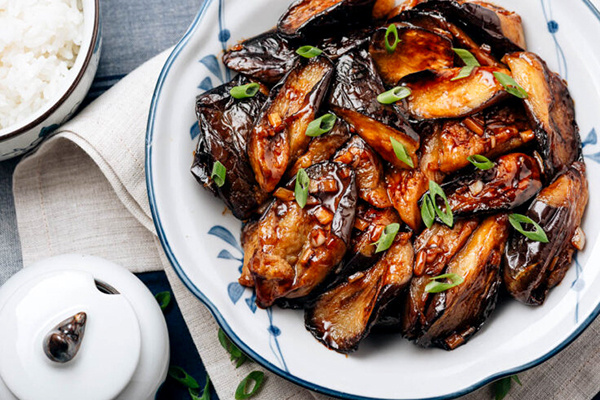 Это блюдо родом из домашней сычуаньской кухни. Да, оно полностью веганское, но по насыщенности вкуса даст фору мясу. Здесь используется минимум соуса — только чтобы покрыть баклажаны, а не утопить их. Благодаря этому сохраняется текстура, появляется лёгкая карамелизация, а вкус полноценно раскрывается. Именно так баклажаны готовят в южном Китае: с уважением, терпением и знанием дела.