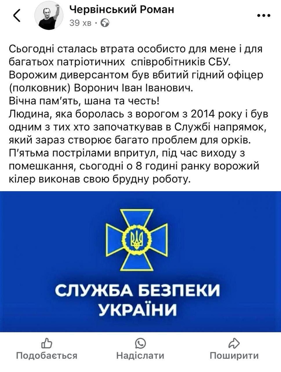 Ликвидированный полковник Воронич «боролся с Россией с 2014-го года» и «основал направление, создающее проблемы РФ