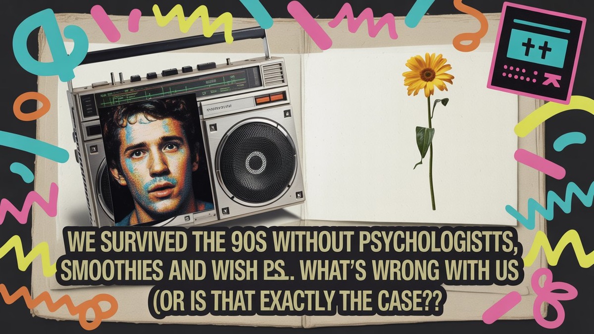 С нами — поколением, которое выросло в 90-е. С теми, кто вместо смузи из авокадо и шпината пил растворимый порошок «Yupi» термоядерного цвета. Чьей главной картой желаний была обложка от жвачки «Turbo» с вожделенным «Mercedes S600». И чьим единственным психологом была кухня, прокуренная до состояния копченой колбасы, где друзья под пельмени и водку ставили диагноз: «Да ладно, прорвемся».