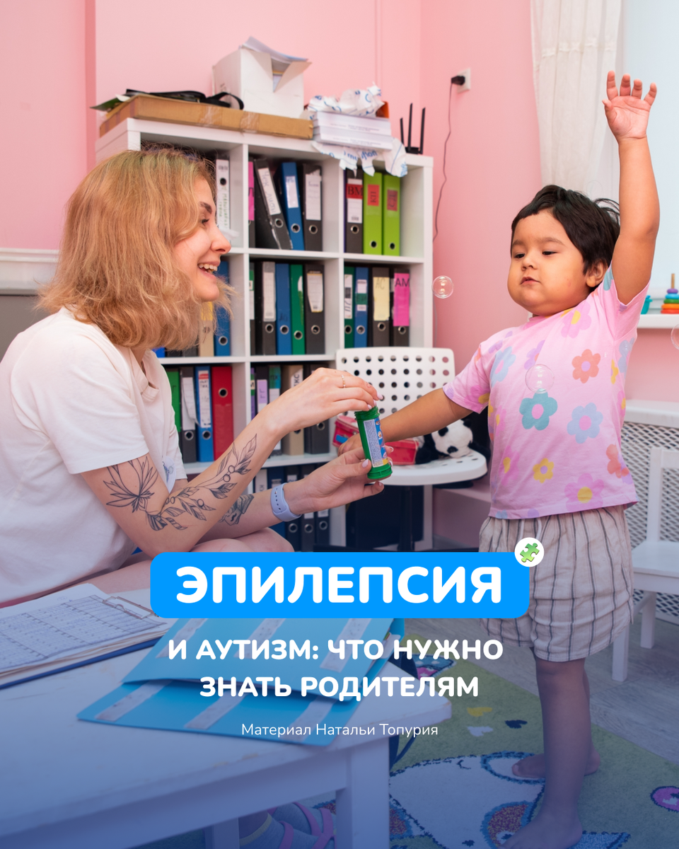 Материал Натальи Топурия Воспитание ребенка с аутизмом — задача не из легких 💙. Если к этому диагнозу добавляется ещё и эпилепсия, то родители оказываются в довольно непростой ситуации. На сегодняшний день примерно у каждого 26-го человека диагностируется та или иная форма эпилепсии. Среди людей с РАС распространенность эпилепсии ещё выше. Эпилептические приступы оказывают крайне негативное влияние на развитие ребёнка и могут свести на нет реабилитационную терапию. 1. Не у каждого ребёнка, пережившего припадок, эпилепсия. У этого могут быть и другие причины: резко упавший уровень сахара в крови или высокая температура 🌡️. Однако, если ваш малыш столкнулся с такой проблемой — незамедлительно обратитесь к врачу. 2. Эпилептические приступы могут пугать людей, далёких от этой проблемы. Они не знают, как реагировать и как помочь, поэтому часто просто избегают контактов с вашим ребенком. Для того, чтобы не оказаться в социальной изоляции, необходимо снабдить людей, взаимодействующих с малы
