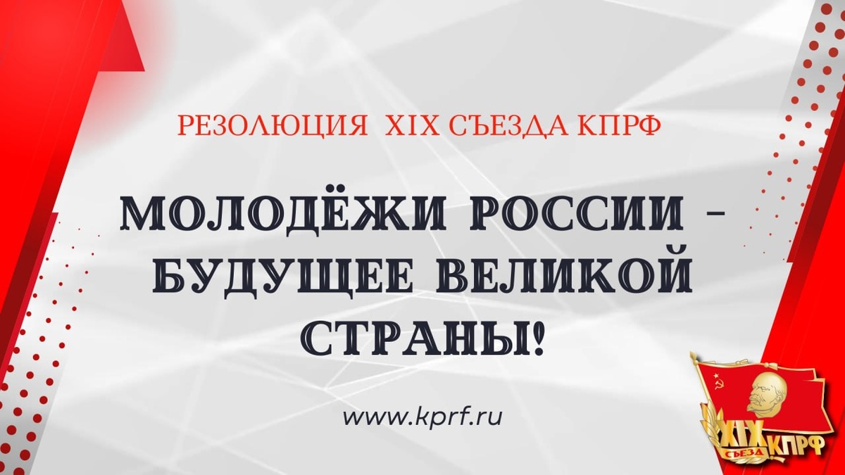 Молодёжи России – будущее великой страны! Резолюция XIX Съезда КПРФ