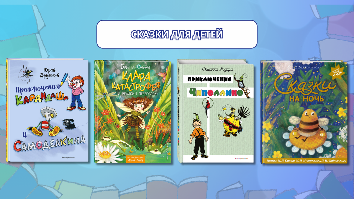 Сказки — это не просто увлекательные истории перед сном. Они играют важную роль в развитии ребенка, формировании его личности и понимании мира. Они переносят детей в волшебные миры, где животные разговаривают, а добро всегда побеждает зло. Это стимулирует фантазию, учит мыслить нестандартно и находить творческие решения проблем. А еще — в каждой сказке заложен важный урок: доброта, честность, смелость, дружба. Через примеры героев дети учатся отличать хорошее от плохого, понимать последствия своих поступков. Собрали сегодня подборку, в которую вошли как уже ставшие классическими сказки, так и новые, полезные, захватывающие истории. «Приключения Карандаша и Самоделкина» Карандаш — волшебный художник, который может нарисовать что угодно, и оно оживает. Самоделкин — маленький железный человечек, мастер на все руки, умеющий чинить и изобретать самые невероятные вещи. Вместе они попадают в увлекательные приключения, где их ждут загадки, погони, забавные ситуации и, конечно, победа добра над