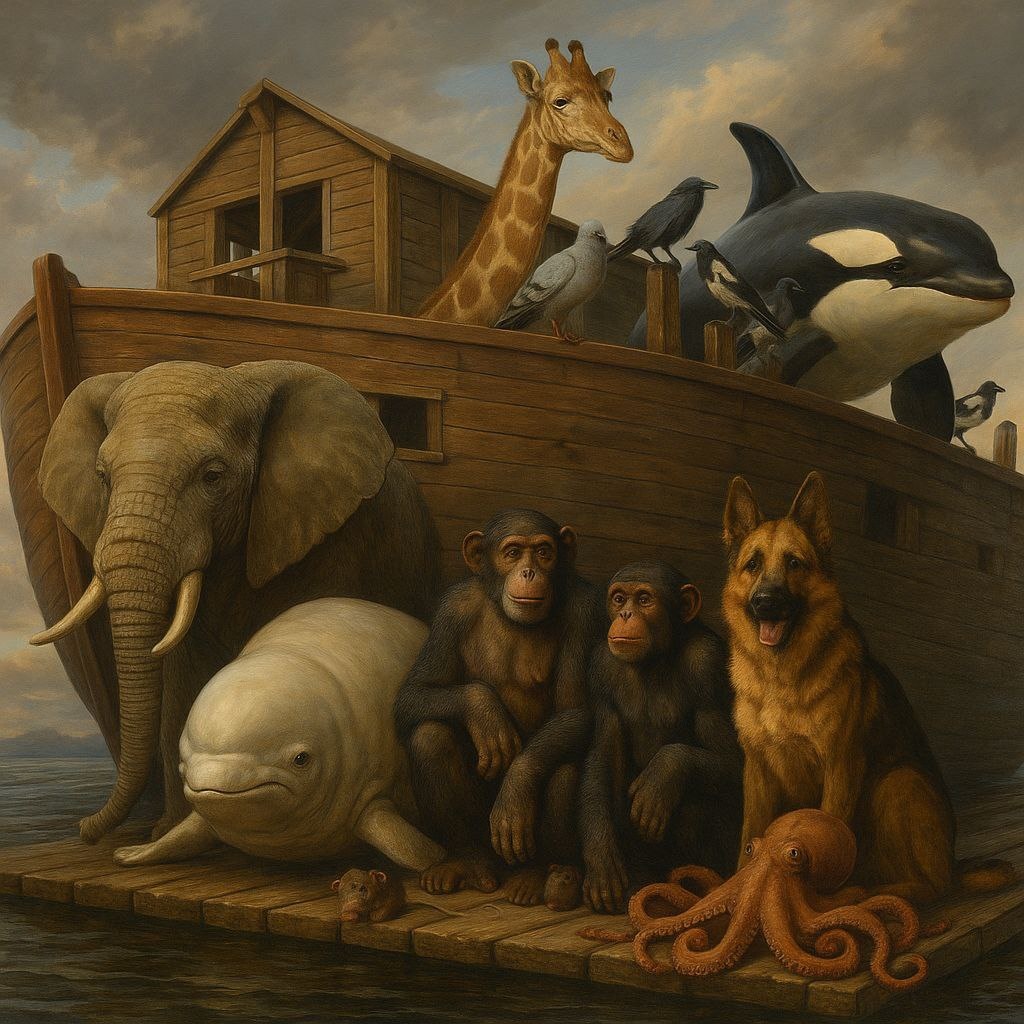ЧЕЛОВЕЧЕСТВО НА СТОЛЬКО О СЕБЕ ВЫСОКОГО МНЕНИЯ, ЧТО ПРЕПИСЫВАЕТ СЕБЕ ПРЕВОСХОДСТВО ТАМ, ГДЕ ЕГО НЕТ. Список животных, которые уделывают нас, по параметрам которыми мы гордимся МОЗГ / КОГНИТИВНЫЕ ФУНКЦИИ Шимпанзе Рабочая память выше человеческой: распознаёт 9 чисел за 0.2 секунды. Голуби Запоминают до 1200 точек, ориентируются по магнитному полю и запахам. Голубей используют для расспознания рака на снимках. КОНЕЧНОСТИ Осьминог 8 щупалец с автономным управлением и сенсорикой, мозг даёт только цель. БОЛЬШОЙ МОЗГ Кашалоты, киты, касатки До 9 кг мозга, развитые лобные доли, культурное поведение. КОММУНИКАЦИЯ Дельфины Передают точные 3D-образы обьектов через звук, используют имена и синтаксис. УСТОЙЧИВОСТЬ К БОЛЕЗНЯМ Гренландский кит Живёт до 200 лет без рака, контролирует деление клеток. Крысы Восстанавливают мозг после разрушений, устойчивы к токсинам и вирусам. ПРЯМОХОЖДЕНИЕ Все птицы Двуногость, бег, полёт, координация лап и клюва. А врановые еще и превосходят п
