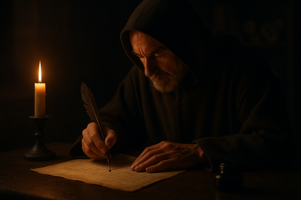 Монах‑писец не просто переписывал текст. Он жил в тишине. В холоде. В страхе.