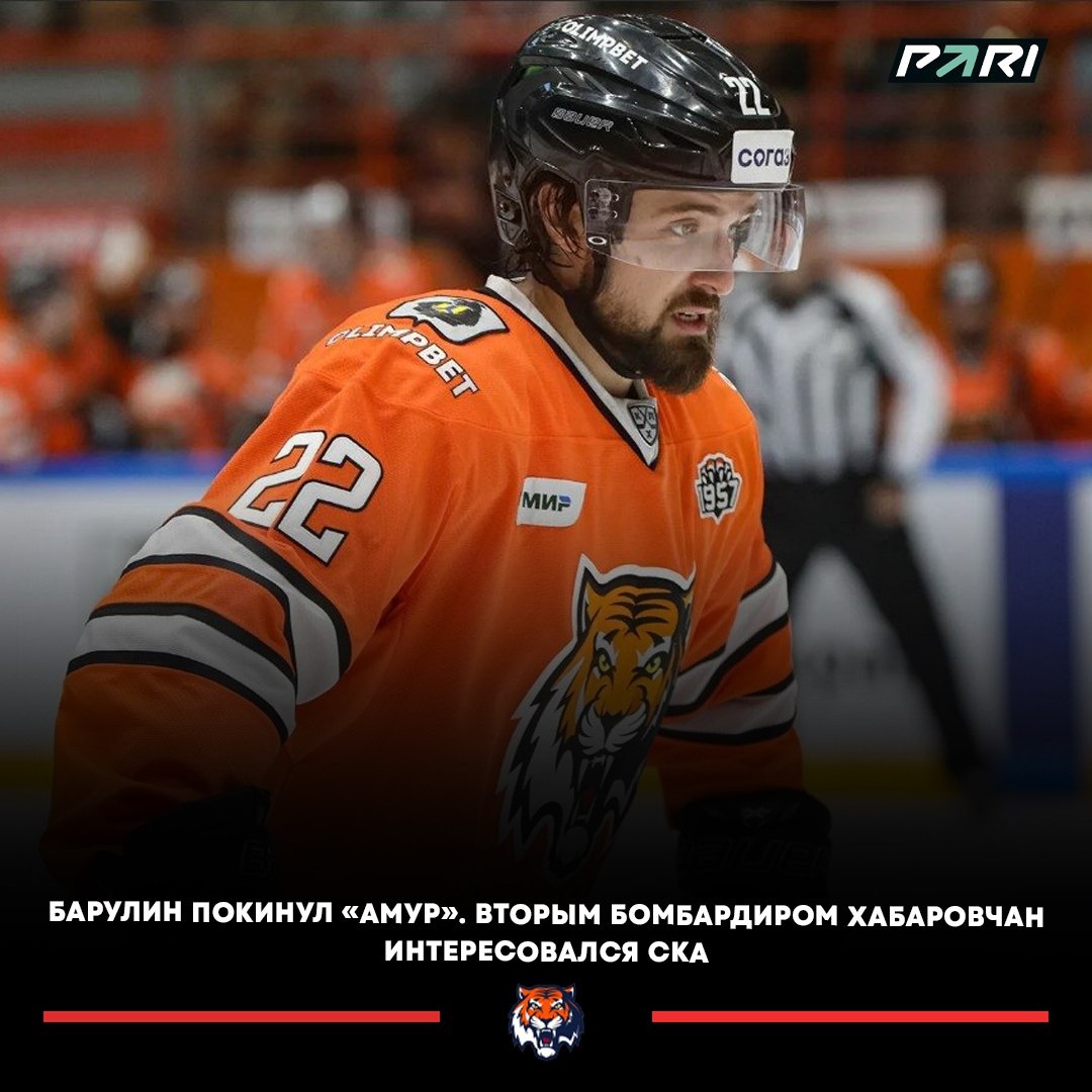 🔥🇷🇺 «Амур» объявил об уходе нападающего Владислава Барулина. 🚨 В прошлом чемпионате КХЛ 29-летний игрок стал вторым бомбардиром и снайпером хабаровского клуба, набрав 33 (13+20) очка в 56 матчах. ✍️ В апреле сообщалось об интересе к Барулину со стороны СКА.