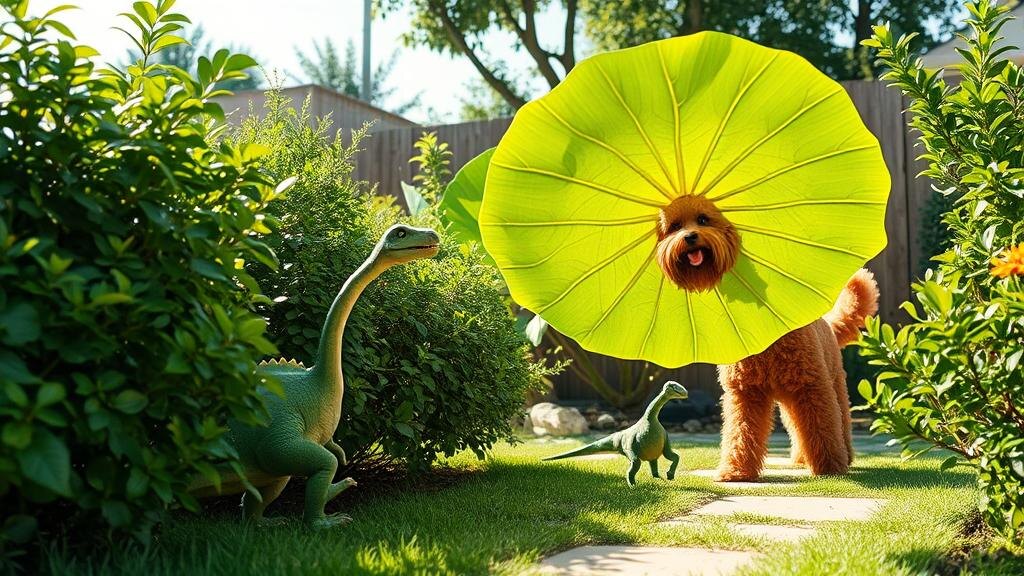 Мини-история: Дино и таинственный листик 🍃 Сегодня Дино гулял по двору и вдруг заметил потрясающе большой зелёный лист! Он осторожно подтолкнул его носом... и листик завертелся, будто огромный волчок. Дино замер, а потом прыгнул за ним — и началась настоящая охота! Персик выглянул из-за кустиков и весело завилял хвостиком, увидев, как Дино втягивается в игру. То листочек ускользнёт, то крутится, а Дино за ним наперегонки! Вот это приключение! Дино стал настоящим ловцом листьев! А ты ловил осенью листики на ветру? Посчитай, сколько листьев сможешь поймать за одну прогулку!