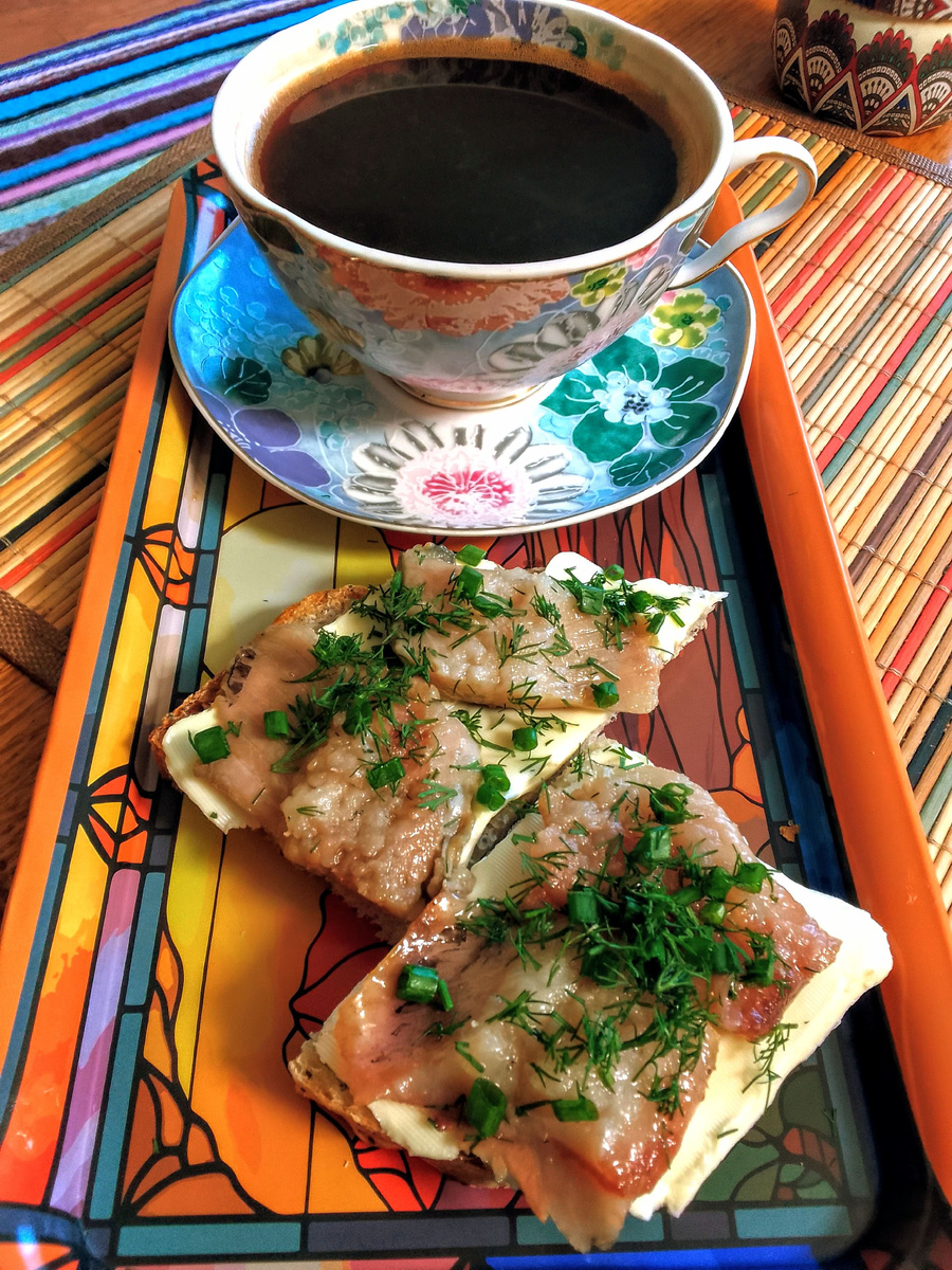 10.07.2025 Приветствую, друзья! Про завтрак. Я люблю кофе с бутербродом, с сыром и маслом. У Мамулика своеобразный вкус, она также пьёт кофе, а бутерброд у неё с домашним солёным салом! Мне этого не понять) Мы тут на днях ларь размораживали и обнаружили в нем две свежемороженных селедки. Мама у меня гуру в засолке рыбы, быстренько её засолила. И вот сегодня с утра поступило от неё предложение, будешь бутерброд с селёдкой? Да, не раздумывая сказала я😂 Селёдочка как всегда удалась, и с кофе очень даже не плохо пошла)) До обеда поработали на участке, вывезли мусор, до соседки дошли, два вилка капусты ей срезала, каждые выходные меня в магазин возят, отблагодарила, чтоб и дальше возили. На обед готовила тефтельки, хотела суп с фрикадельками сварить, картошки нет, надо в погреб лезть, неохота, экономить будем картошку) Фарш из свинины и куриной грудки, лук, чеснок, капуста, рис, специи. Сначала немного обжариваю, потом доливаю водички и тушу почти до готовности, затем добавляю сметану,