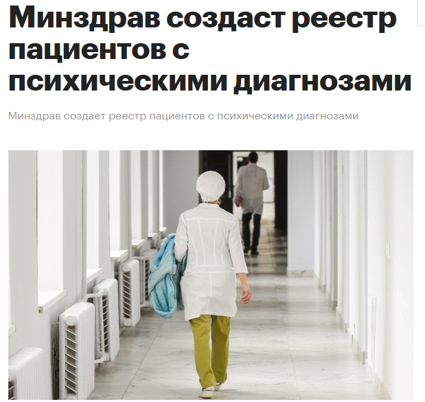 В России данные граждан, обращавшихся за психиатрической помощью, внесут в специальный реестр, доступ к которому получат врачи, чиновники и полицейские. С самого начала ведения своего блога я боролся с мифами, что при обращении человека к психиатру его возьмут на карандаш, что на самом деле угрозы нет. Ну что же - походу со следующего года эти посты станут неактуальны. Плюсы реестра заявляют такие: - Единая база пациентов со статистикой заболеваемости по стране; - Отслеживание опасных и потенциально опасных людей; - Контроль за получением справок для вождения, оружия и прочего людьми, которым это противопоказано; - Прогнозирование льготных лекарств. Но вот какие риски: - Возможные утечки данных, угроза врачебной тайне; - Ограничение прав людей по заболеваниям; - Стигматизация пациентов; - Возможные репрессии неугодных граждан по психиатрическим причинами. Паниковать, конечно же, не стоит, но вот если долго откладывали поход к вра