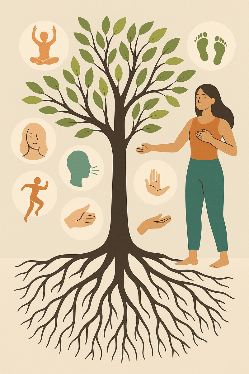 Представьте себе дерево. Его ветви тянутся к свету, листья ловят ветер, ствол могуч и стабилен. Но вся сила — в корнях, невидимых глазу. Почувствуйте: и мы такие же. Наши эмоции, мысли, желания — словно ветви и листья. А тело — наши корни, наше настоящее. Когда мы забываем о нём, теряем себя. Когда возвращаемся к телу, обретаем силу, равновесие, жизнь.