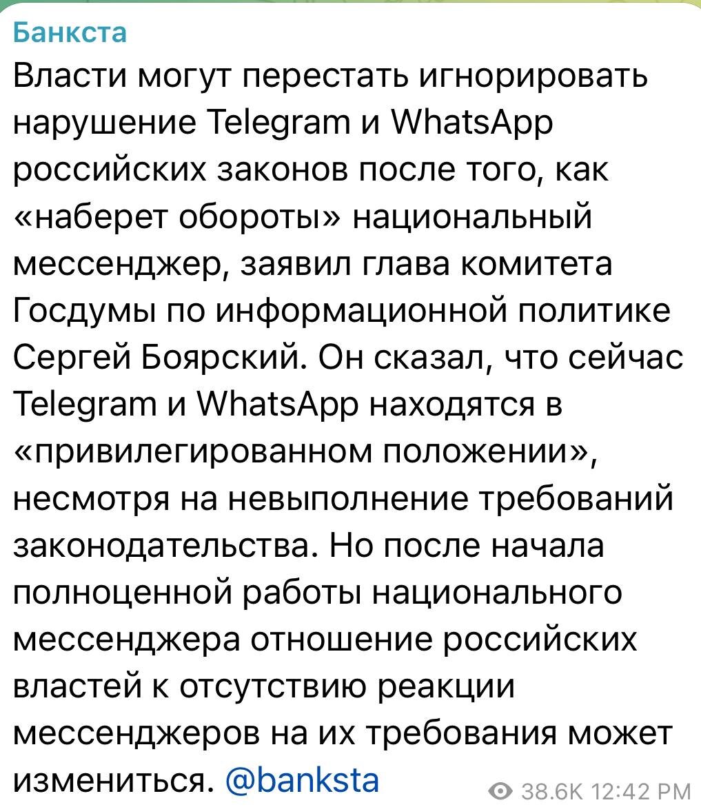 Национальный мессенджер Max готовят к запуску. Далее понятно что будет. Ждем ужесточение работы привычных нам мессенджеров. Видимо придется допом использовать Max.