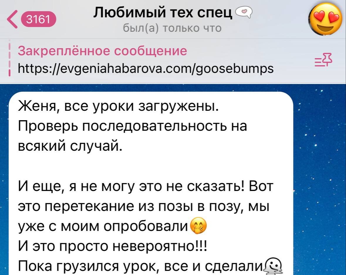 Девчонки! Завтра здесь открою продажи на свой новый курс про секс 🔥🔥🔥 Все подробности завтра, а пока ловите отзыв от моего тех спеца, которая уже все опробовала 🫦😁
