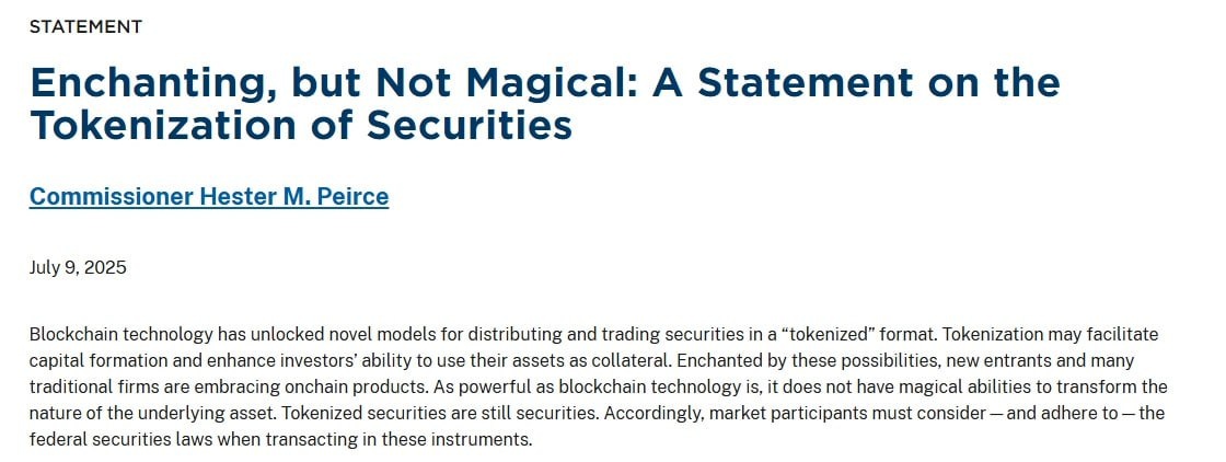 #chianews #chiaнашвзгляд Вышли первые комментарии SEC относительно токенизации ценных бумаг. Технология блокчейн открыла новые модели для распределения и торговли ценными бумагами в «токенизированном» формате. Ниже приведено самое главное: 🍃 Преимущества токенизации: • Упрощает привлечение капитала. • Повышает ликвидность активов и их использование в качестве залога. 🍃 Важные ограничения: • Токенизированные ценные бумаги остаются ценными бумагами и подчиняются федеральным законам о ценных бумагах. • Блокчейн меняет только форму представления актива, а не его суть. 🍃 Способы токенизации: • Эмитент может токенизировать собственные бумаги (например, акции компании). • Третьи лица могут выпускать токены, обеспеченные ценными бумагами, которыми владеют, или токенизировать «права требования» инвесторов. 🍃 Обязанности участников рынка: • Распространители токенизированных ценных бумаг обязаны соблюдать требования по раскрытию информации. 🍃 Взаимодействие с регулятором: • Участника