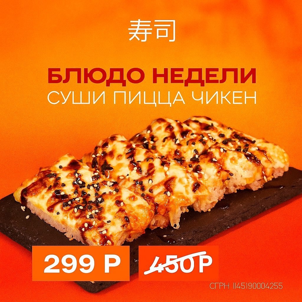 Суши пицца чикен доступен за 299Р вместо 459Р.