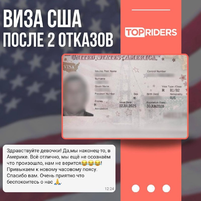 Виза США после 2 отказов 🇺🇸 Клиент не видел свою дочь 7 лет! 1 июля: одобрение первичной визы США гражданину РФ после 2 отказов. Кейс: мужчина, состоит в браке и работает главным механиком. В США проживает по рабочей визе дочь, с которой они не виделись 7 лет. В России остаётся сын, который выступает спонсором поездки. За последние 5 лет было посещено 4 страны. Собеседование проходило с переводчиком. Вопросы консула: — Какая цель вашей поездки? — Как давно дочь живёт в США? — Кем работает сын? — Из-за чего были отказы в визе? После ответов на вопросы консул одобрил визу США! Получить визу США ⬅️ Записаться на консультацию ⬅️ #кейс #виза_сша #виза_после_отказа