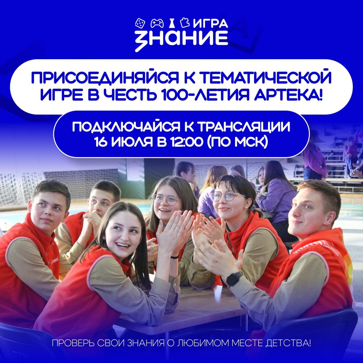 Артековец сегодня — артековец всегда! 🔥 Уверены, что это выражение знают почти все взрослые и дети. МДЦ «Артек» — это место, где ребята вот уже 100 лет учатся дружить, мечтать и открывать новое. 🌊 И в честь юбилея любимого лагеря мы предлагаем вам проверить свои знания о центре, находящемся на побережье Крыма! Участников ждёт 3 тура, в каждом из которых 10 вопросов, связанных с историей, традициями и легендами Артека, а один из вопросов задаст сам директор МДЦ — Константин Федоренко! 16 июля в 12:00 по московскому времени подключайтесь к прямой трансляции и соревнуйтесь со школьниками со всей страны и ребятами, которые отдыхают в детских оздоровительных учреждениях. Сыграть в игру можно как командой, так и индивидуально. 🎁 Победители командного зачёта получат набор брендированного мерча, а лучший участник индивидуального зачёта — тот самый портфель «Артек» прямиком с берега Чёрного моря! Это уникальный шанс окунуться в атмосферу творчества, вдохновения и ярких эмоций вместе с д