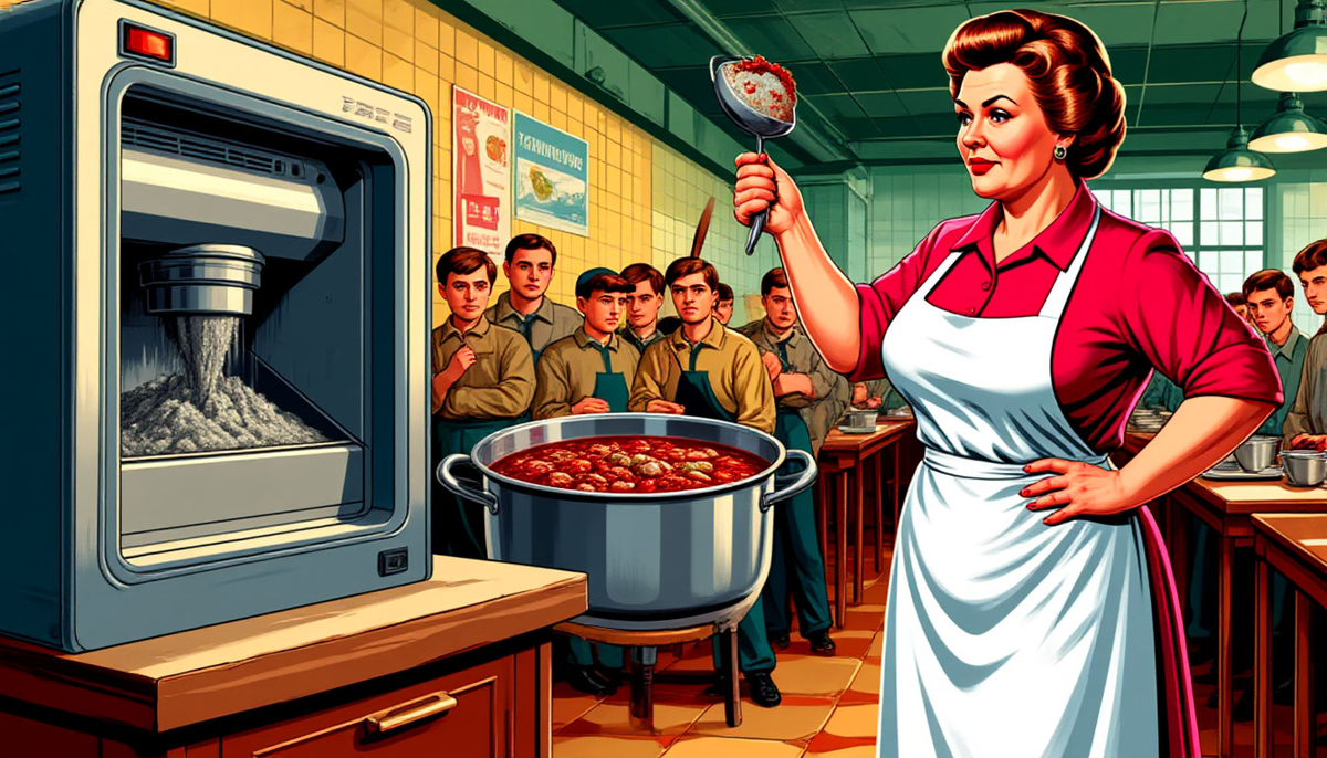 Лето на студенческой базе отдыха Политеха «Квант» всегда пахло соснами, речкой и неизбежной гречневой кашей. Но в этом году в воздухе витал новый аромат – запах прогресса. В столовую привезли экспериментальный пищевой синтезатор «Скатерть-2М».