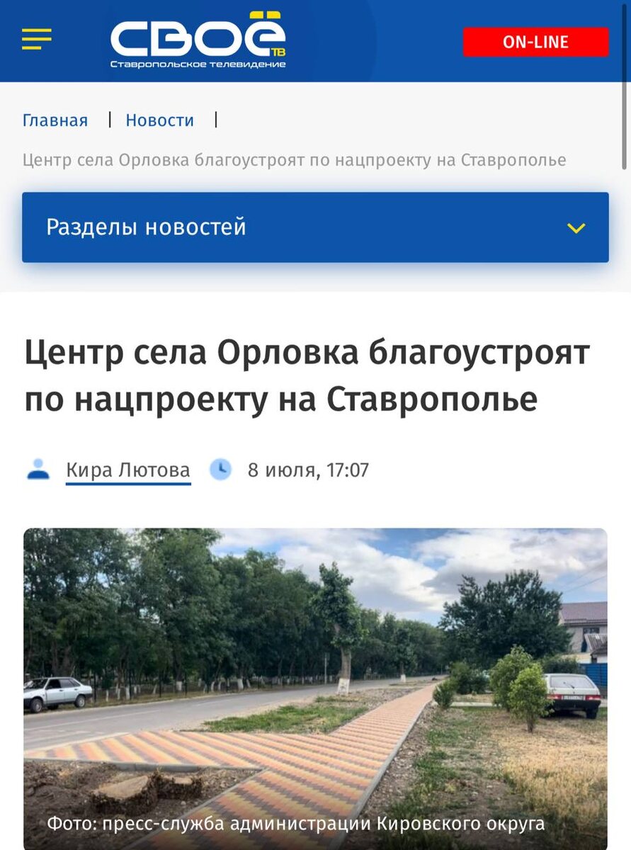 #КировскийокругвобъективекраевыхСМИ Село преображают уже несколько лет. В Кировском округе благоустроят центр села Орловка и улицу Первомайскую по нацпроекту «Инфраструктура для жизни». Половину запланированной работы уже завершили. До 1 ноября здесь планируют уложить плитку, асфальтировать часть улицы. Об этом 8 июля сообщило управление пресс-службы и информполитики губернатора и правительства Ставропольского края. «С 2020 года в селе благоустроили парк, в котором обновили тротуары, лавки, установили светильники, камеры видеонаблюдения, ограждение, тренажёры, оборудовали детский игровой комплекс. В прошлом году установили столы для тенниса, беседки для настольных игр, а также питьевой и декоративный фонтаны», — рассказал глава Кировского округа Николай Новопашин. По программе формирования комфортной среды, которая сейчас вошла в нацпроект «Инфраструктура для жизни», преображают старые общественные пространства и создают новые. В 2018 года на территории округа обновили центральные