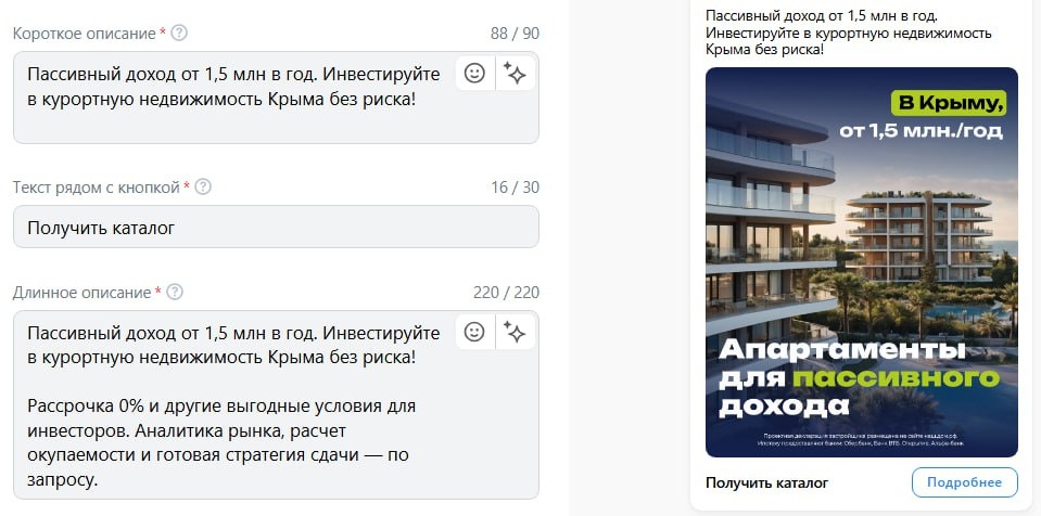 А вот и антикейс по доходной недвижимости Крыма. Не угадал с аудиторией. Потрачено 3500 рублей, 0 лидов. Клики по 80 р. Настройки были такие: — ключи "инвестиции в недвижимость". — ца 30-64 — регионы стандартные Это была новая гипотеза. Новые тесты и необходимо было проверить актуальность оофера "Апартаменты для пассивного дохода". По первичным показателям вроде все должно было сработать. Но как видим, что-то не цепануло. Это нормально, бывает. Не всё с первого раза стреляет. Буду запускать новые тесты, поменяю креатив и добавлю новые плейсменты. Вот думаю, может быть стоит запустить на ЦА по которой уже идут лиды. Может быть такое, что именно в ВК на инвесторов в недвижимости офферы не работают. А вы что думаете? Есть тут эксперты, где я совершил ошибку?