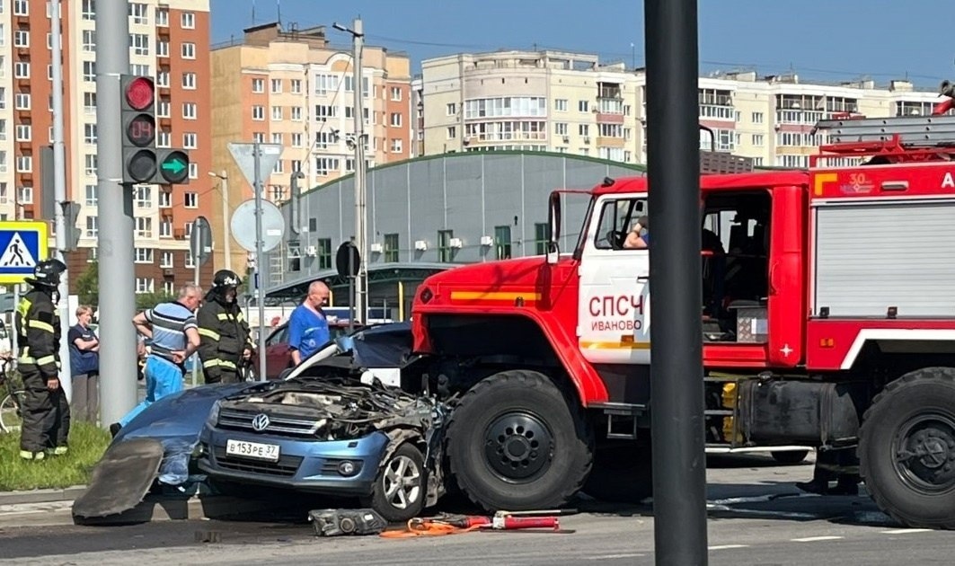 ❗️ Подробности смертельного ДТП на перекрестке Лежневской и Текстильщиков 9 июля в 09:00 в Иванове на регулируемом перекрестке улицы Лежневской и проспекта Текстильщиков произошло смертельное ДТП. В УМВД России по Ивановской области рассказали подробности. Противопожарный автомобиль «АЦ» двигался на запрещающий сигнал светофора по полосе встречного движения с включенными проблесковыми маяками и специальным звуковым сигналом. За рулем находился 27-летний водитель. В это время справа в крайней правой полосе двигался автомобиль «Фольксваген Тигуан» под управлением 53-летней женщины. В результате столкновения водитель иномарки скончалась до приезда скорой. Возбуждено уголовное дело.