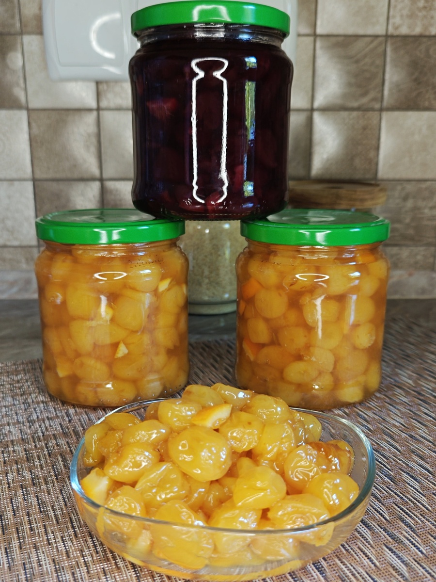 Успейте в этом сезоне приготовить невероятное варенье из черешни с апельсином — вкус, который стоит сохранить! Это ароматное лакомство подарит вам солнечное лето даже зимой. Ингредиенты: Черешня (красная и/или белая) — 2 кг Апельсин — 1 шт. (на каждые 2 кг черешни) Сахар — 200 г на 1 кг черешни Подготовка: Сначала удалите плодоножки, затем тщательно промойте ягоды. Косточки можно вынуть специальным приспособлением, но если его нет — отлично подойдёт обычная чайная ложечка. Я, например, предпочитаю ложку, даже несмотря на наличие инструмента — ягода остаётся целой и красивой. Апельсин нарежьте мелким кубиком вместе с кожурой, добавьте к подготовленной черешне. Засыпьте сахаром — 200 г на каждый килограмм черешни. Поставьте варенье на средний огонь и доведите до кипения. Как только закипит — отключите нагрев и дайте полностью остыть. Повторите процесс 5–6 раз — это зависит от сочности ягод. Такой метод позволяет сохранить ягоды целыми, а вкус — насыщенным. Точно так же я варю варень